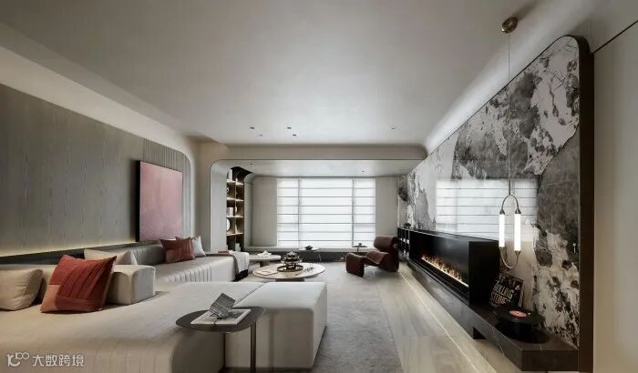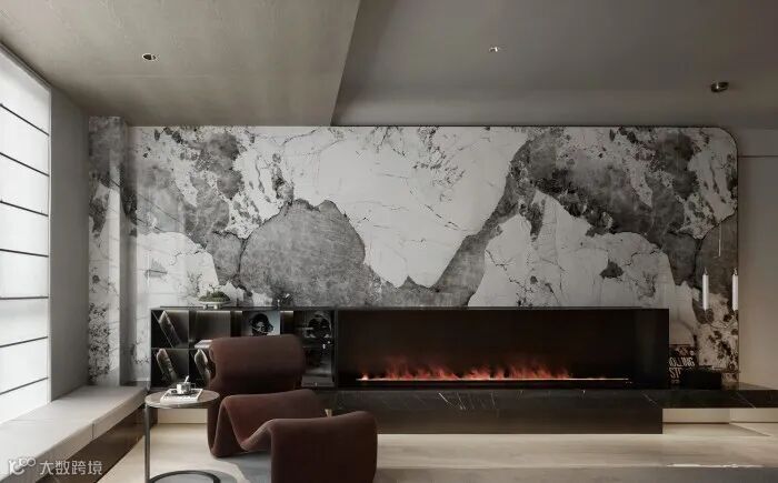 潘多拉石材背景墙的自然机理诉说着大自然历经万年所创造的杰作,结合精美的壁炉,跳动的炉火,悠扬的音乐,躺平在舒服的休闲躺椅上迷离双眼,如梦似醒,超然物外,回归内心最柔软安然与恬静。