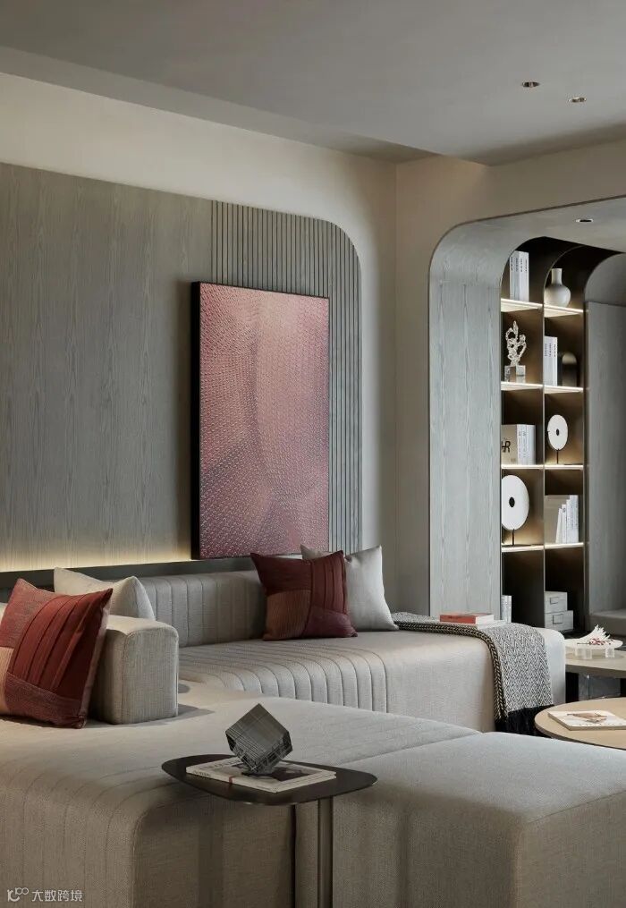 多面沙发灵活自由,配合多层次相互开放的场景分区,沙发背景的的木饰面散播着质朴自然机理,与支撑壁饰的金属构建形成精工以及自然的对话。