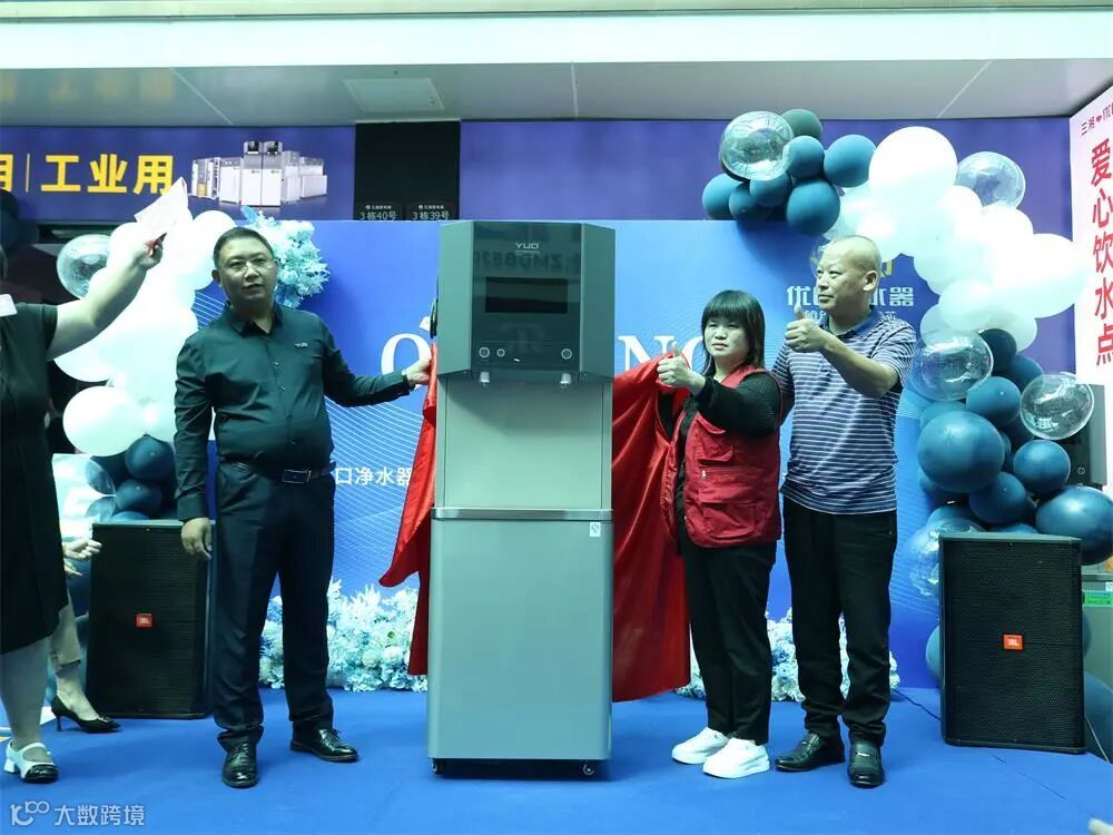 9月25日,优口净水湖南分公司联合南湖三湘大市场举行“情系三湘 爱在优口”公益活动。在优口净水门店放置直饮水机,门口贴有“爱心免费饮水点”的标识,以方便市场里的环卫工人、沿途的快递外卖小哥等一线劳动者免费饮用。