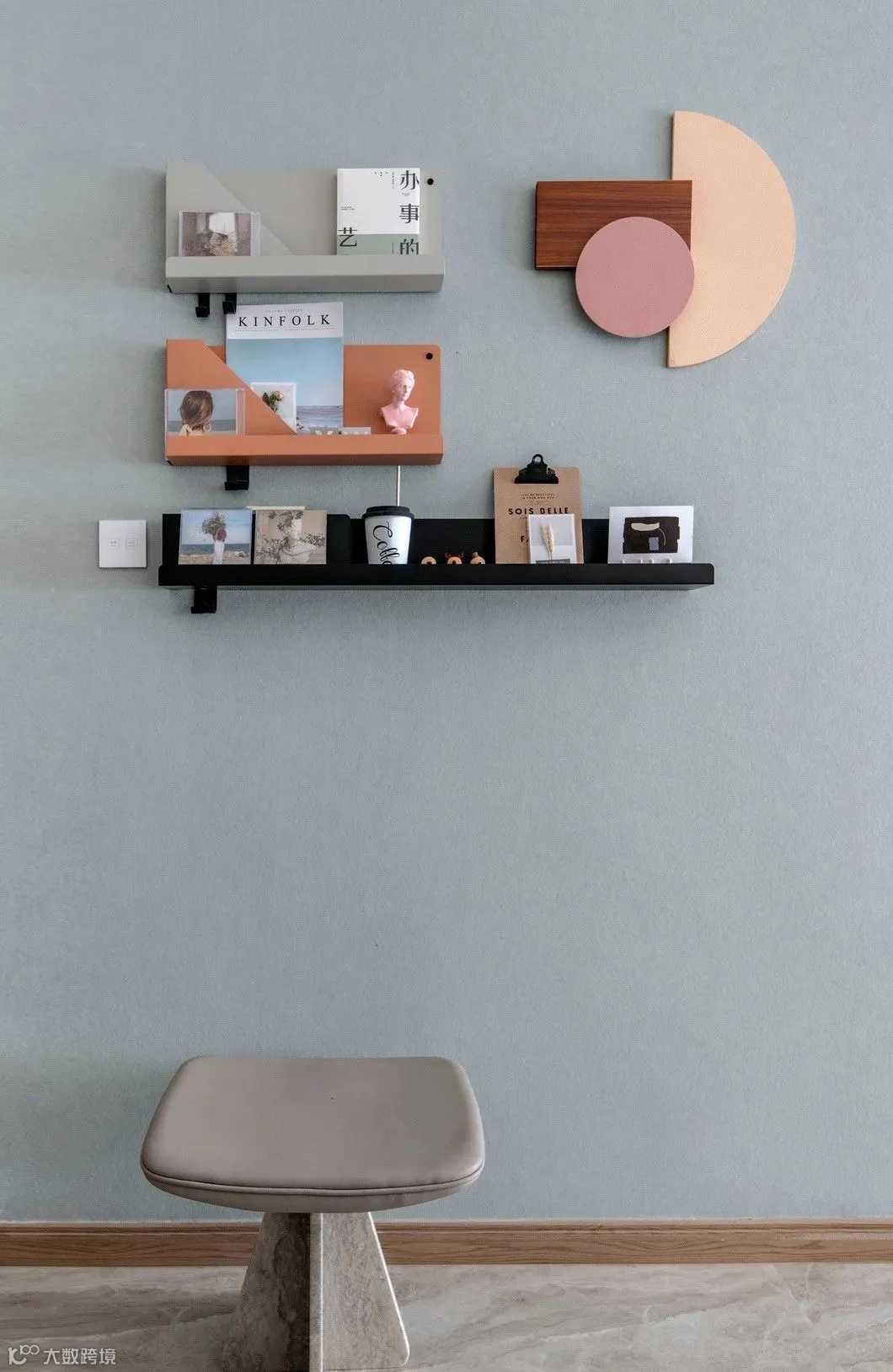 莫兰迪红蓝色系的填补,恰好带入了一抹暖心的温柔,恒定的温度缱绻着惬意的姿态。