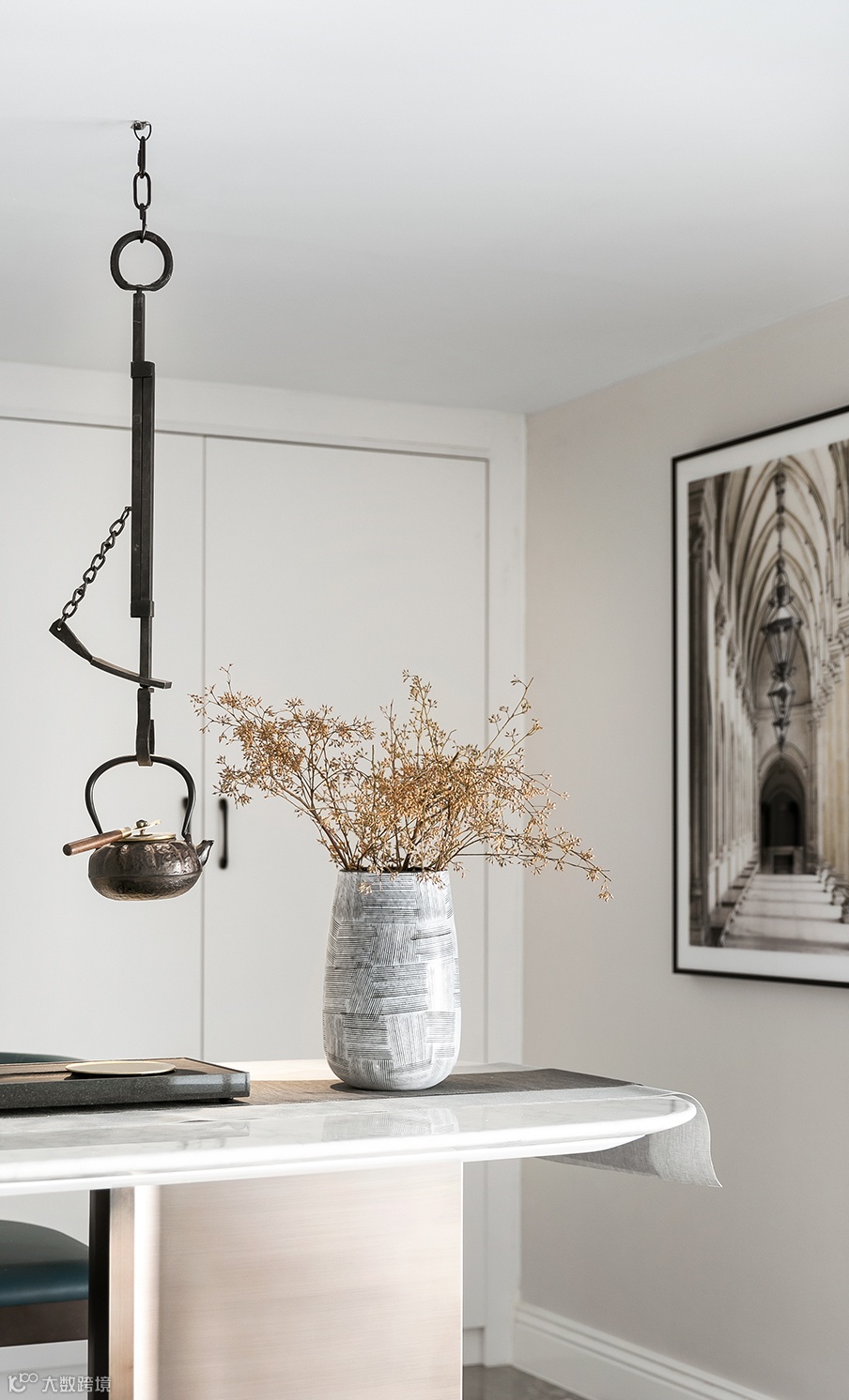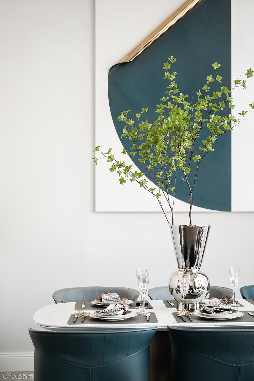餐厅为一体化挑高横厅,舒适而美好。陈设细节以艺术手法渲染出独立自由的生活语境,表达出一种在繁华中回归宁静的韵味,更是主人生活状态、气度胸怀的呈现。