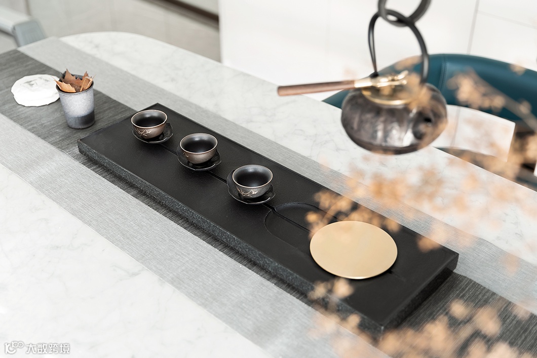 茶室具有一种典雅意境之美,材质的表达,氛围的营造,无外不在渲染空间中安静侘寂之美。