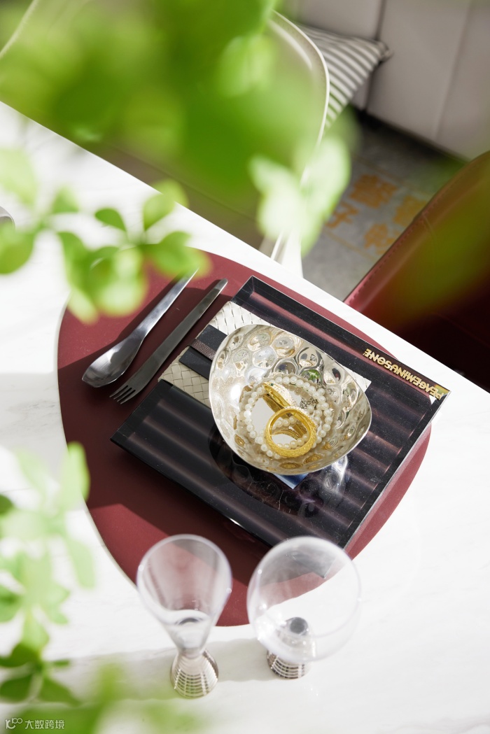 器物所蕴含的韵味体现了空间场域的深刻内涵,托盘的弧形与周围相得益彰,结构的延续,铺陈出极具品质的空间格调。