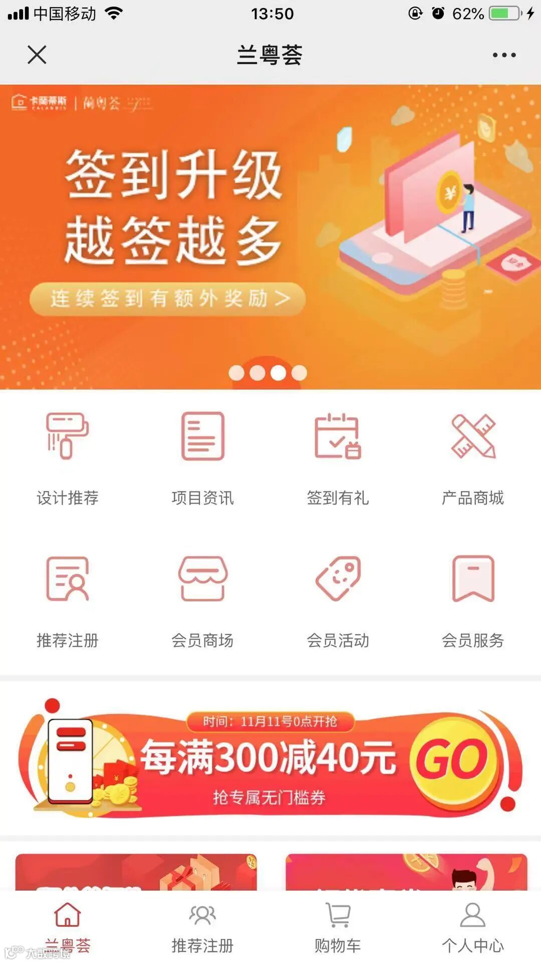 推荐注册、会员商城、会员活动、会员服务
