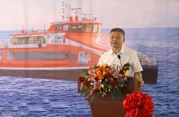 英辉南方为深圳市航运集团设计建造的“鹏星”系列船共11艘,为双体铝合金高速客船,船长40.18米,宽9米,设计航速30节,载客199人。2013年3月首制船开工至今,各节点完成情况及船舶性能均获得船东及船检的一致好评。在交船仪式上,陈奕敏在致辞中高度评价双方七年来的密切合作,感谢英辉南方为深圳市航运集团服务粤港澳大湾区和“一带一路”建设给予的积极支持,即兴赋诗一首:“英辉鹏星心连心,携手合作捷报频。建造新船十又一,粤港水路展星辉”,期待与英辉南方继续合作,为粤港澳大湾区旅客运输提供强有力的交通保障。韩兵在致辞中由衷地感谢船东给予英辉南方参与鹏星高速客船项目建设,表示在产品交付后,英辉南方将持续秉承“兴船报国、创新超越、技艺精湛、勇争一流”的发展宗旨,继续为客户提供全寿命周期的服务,做好售后服务保障工作,期待双方以两艘船的交付为新的起点,进一步合作,助力旅客运输事业更加辉煌的发展。