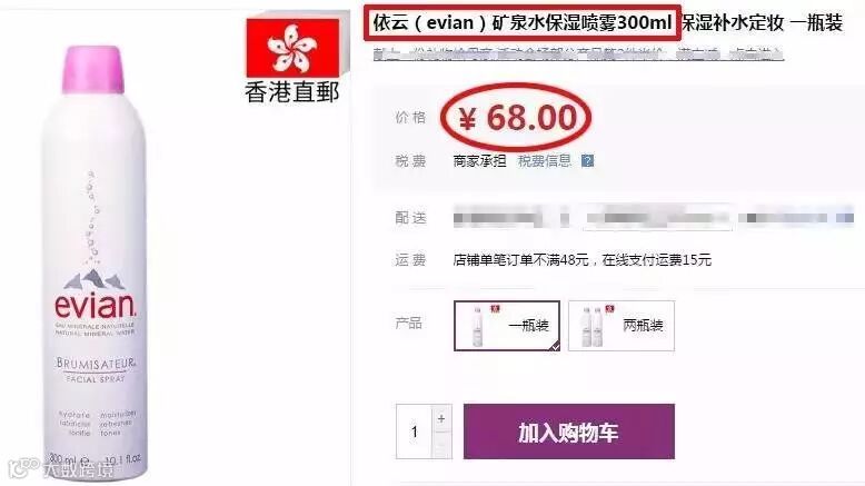 某东商城,依云矿泉水喷雾居然要68元