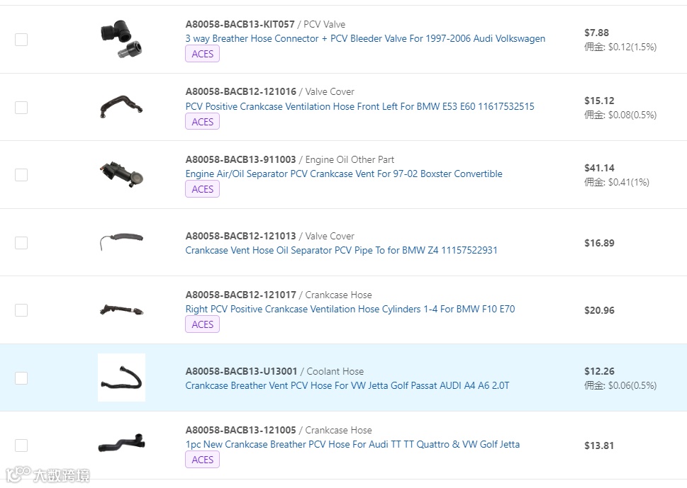 从竞争结构来看,这个类目同样具备明显优势。PCV阀SKU极其分散,不同车型之间几乎没有通用性,导致头部品牌很难实现全面覆盖。市场呈现出“没有绝对垄断、长尾需求极深”的状态,这就给中小卖家留下了足够空间。真正有经验的卖家,往往不会去碰热门车型,而是切入老款车型或者小众版本,这类需求虽然不大,但非常稳定,而且价格体系不透明,更容易做出利润。