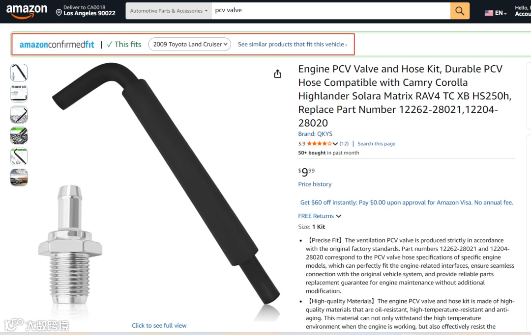 再看平台表现。在Amazon上,这类产品的流量并不大,但转化率非常高。原因在于用户的搜索路径极其明确,大多数人都是带着“车型+年份+PCV valve”直接搜索,这种精准流量天然就具备成交属性。也正因为如此,这个类目不依赖大规模广告投放,更依赖选品的准确性和Listing的匹配度。