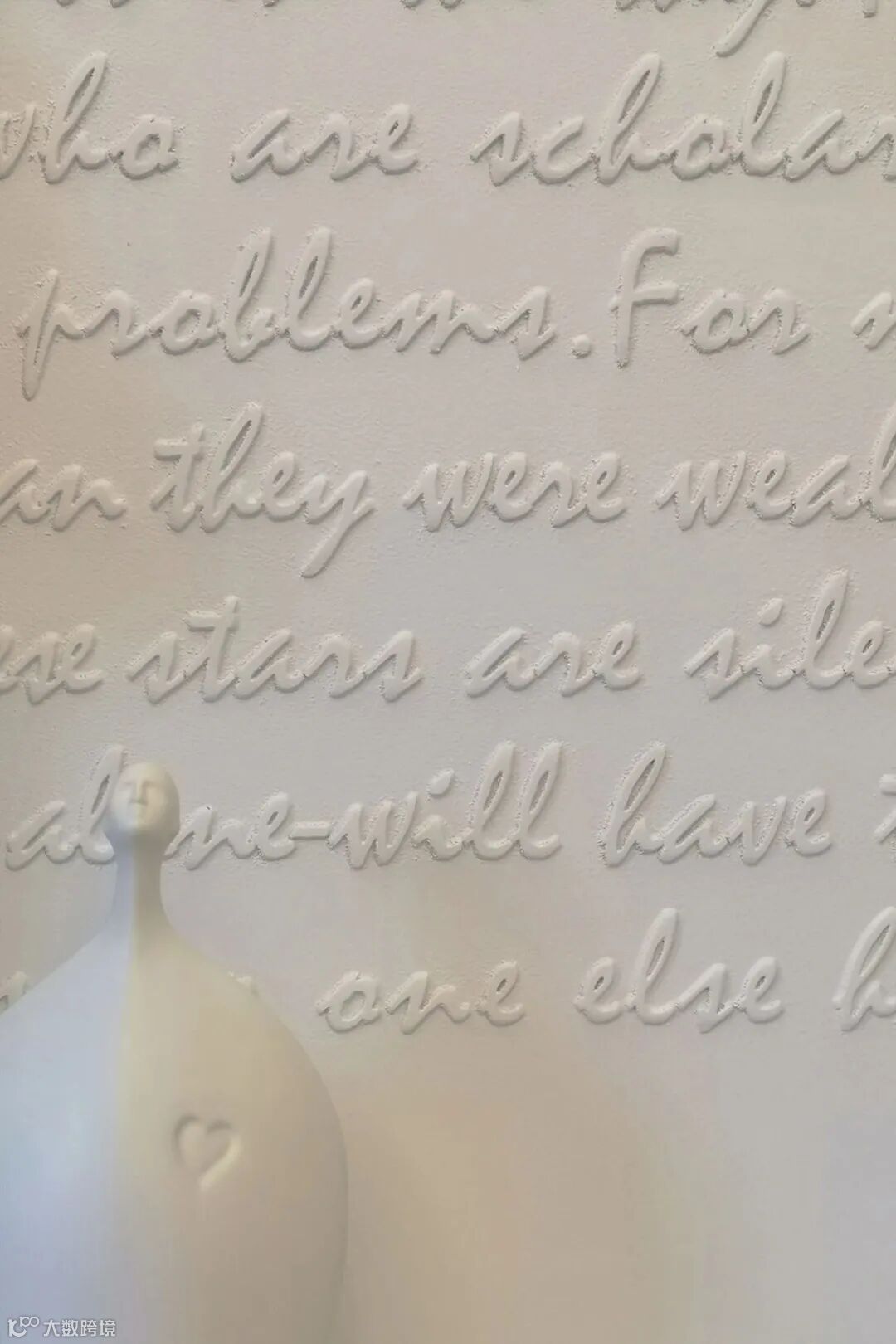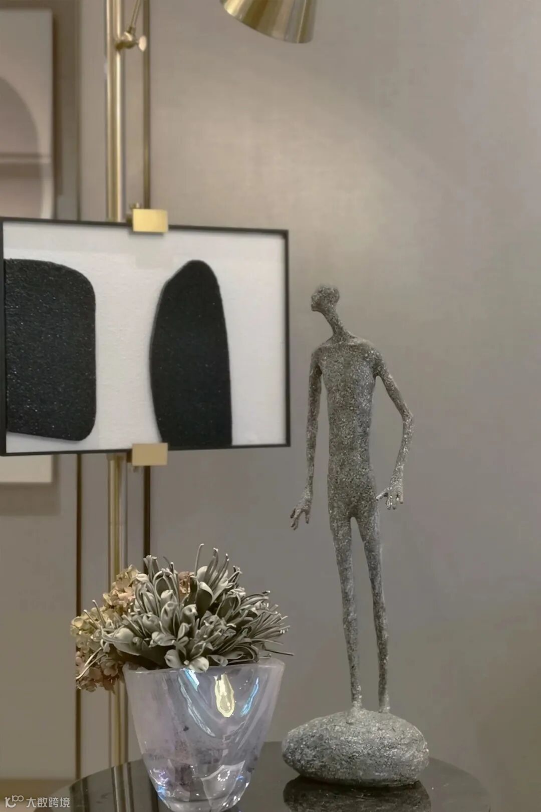 雕塑作品表达了根深蒂固的感情,用粗糙的材质来诠释内心的渴望,坚定而又深情,与空间中其他柔软、丝滑的材质形成对比,是设计师别具匠心的细节把控。