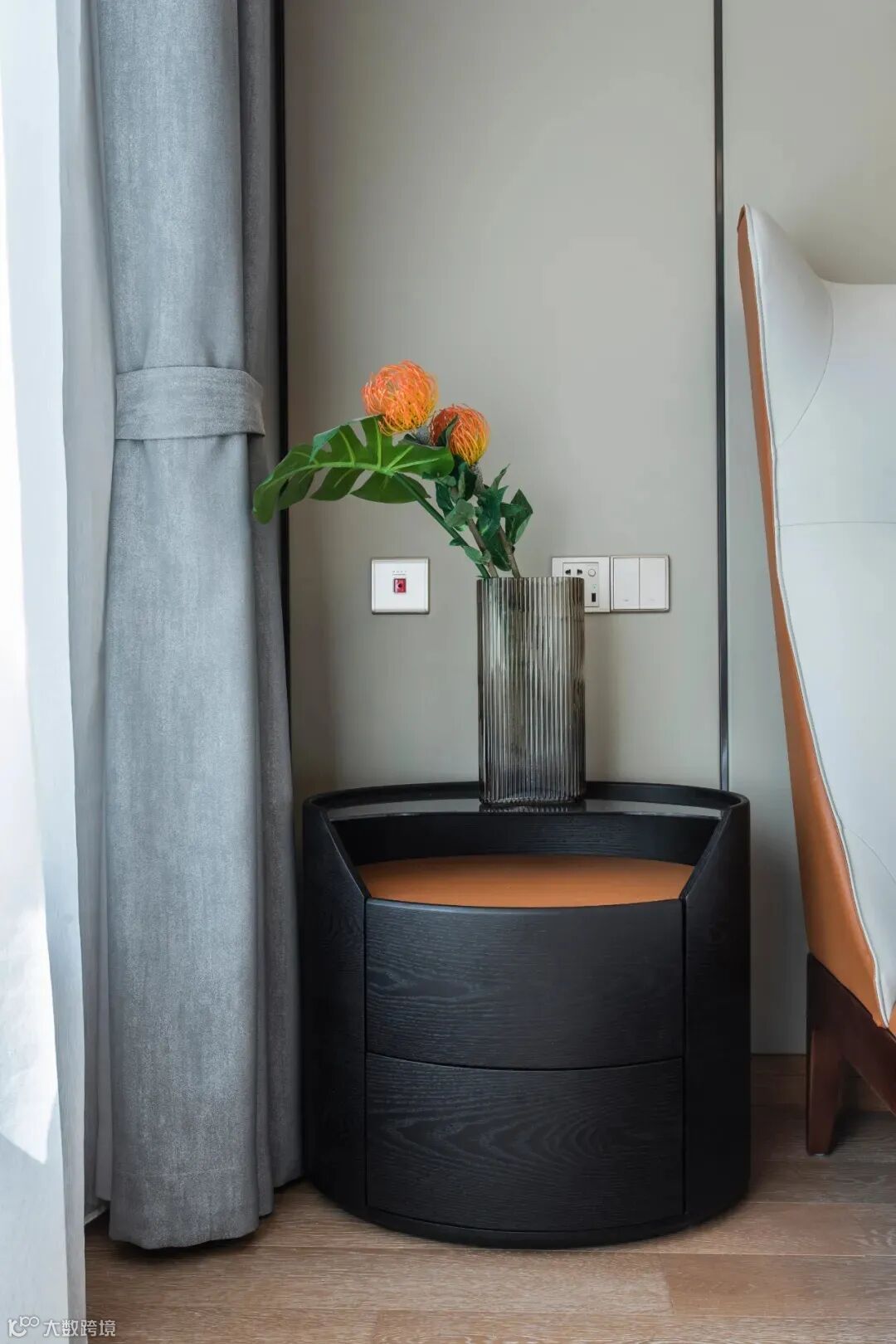 床边的种种摆件无一不透露着细节美,简约却生趣盎然的绿植,给房间添一抹生机。别致又小巧的床头灯,让人眼前一亮。自然与艺术一相逢,便胜却人间无数。