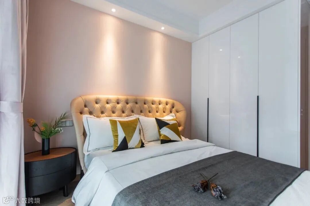 次卧用了柔情的粉,低饱和度的高级感,不过分张扬,好似静影沉壁的画卷。