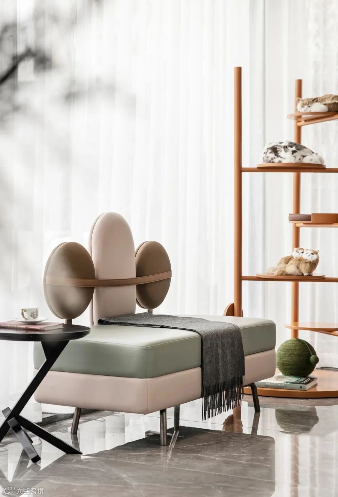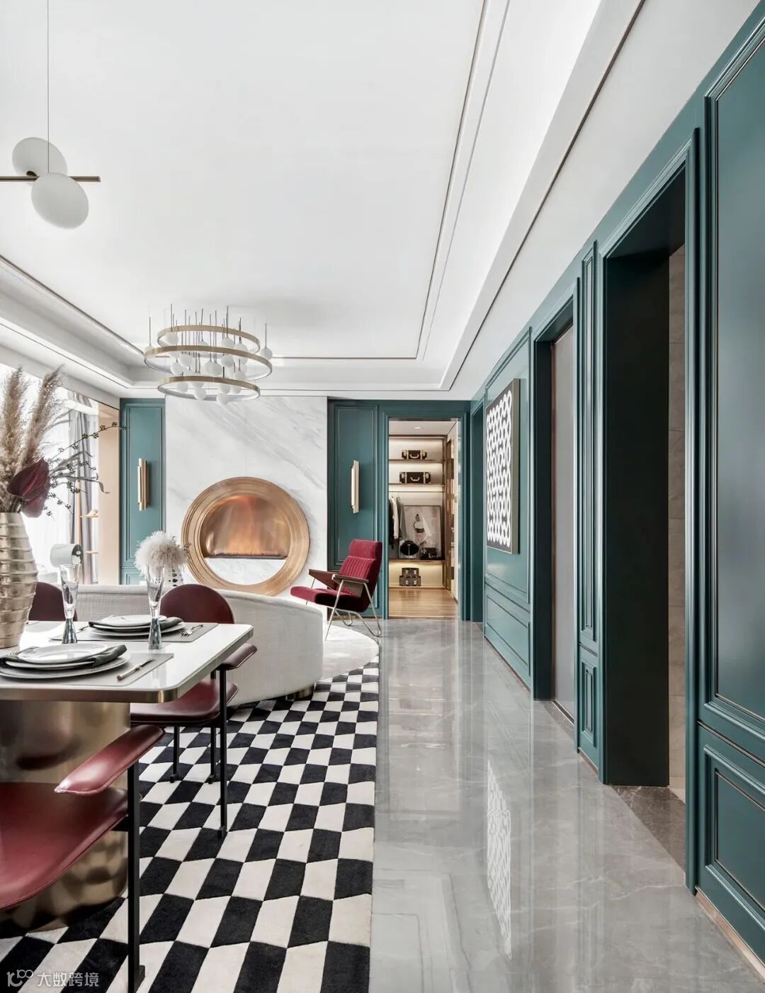 更呼应了空间中的圆形家具及黑白格纹地毯 ▍
