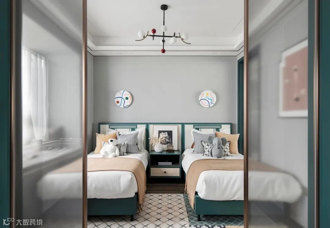 ▍ 儿童房大面积的灰色白色辅以黄色绿色