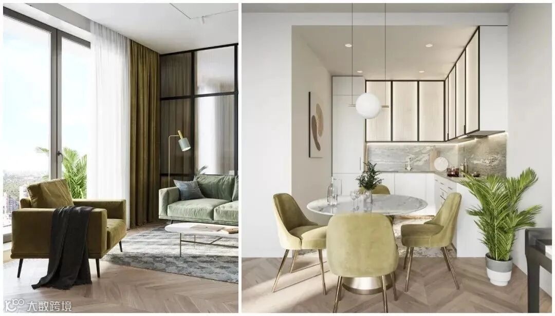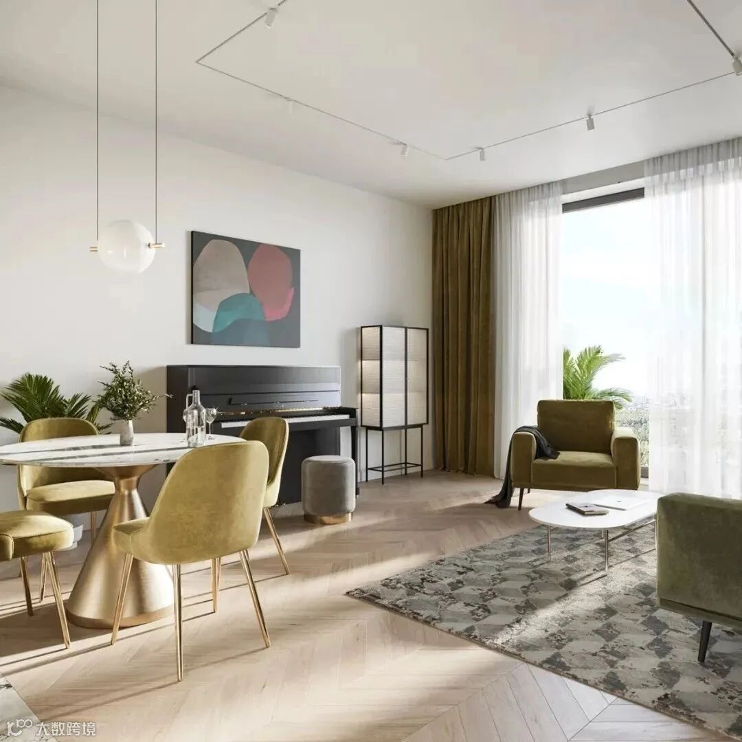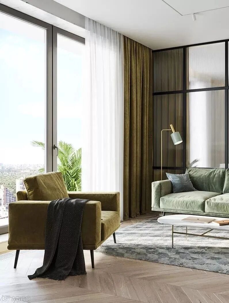 搭配姜黄色、草绿色家具的点缀