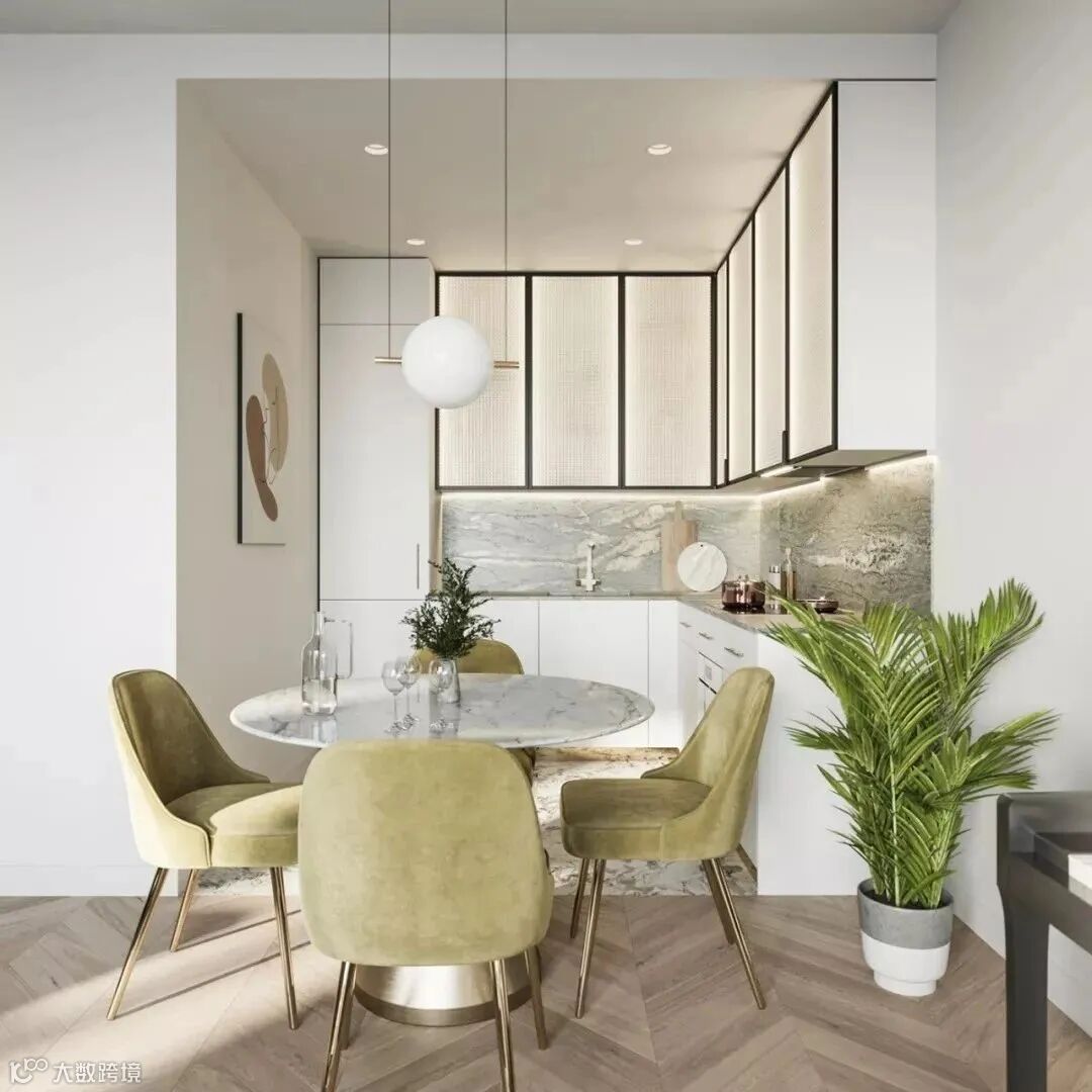 轻盈的大理石餐桌以及精致的餐椅