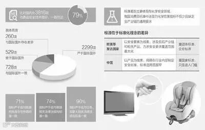 比对中外3816项消费品安全技术指标,有3000项与国际国外要求一致