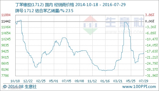 丁苯橡胶市场报盘弱势行情,下游终端市场开工率走低,市场需求本身不高,场内交投氛围更加清淡,但销售公司本周继续限量开单,市场可售货源不多,贸易商出货压力不大,而且原料市场价格高位盘整;另外据生意社监测,中油西北销售公司乳聚丁苯橡胶报价稳定,兰化1500E报价在10600元/吨,出厂价;中石化华中销售公司乳聚丁苯橡胶报价稳定,齐鲁1502挂牌价在10600元/吨,齐鲁1712定价在9600元/吨;华中库提价或配送件。