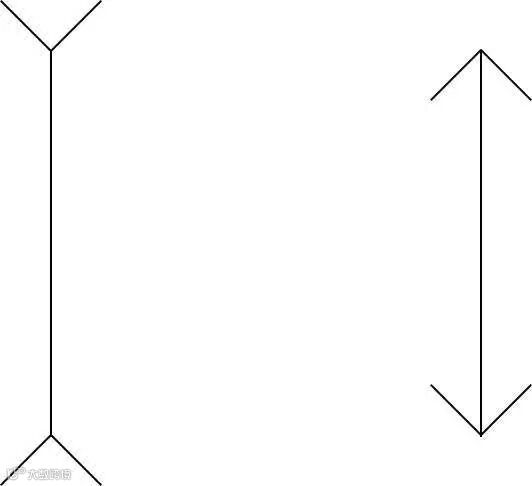 但其实这两条线段是一样长的,只是因为两端的视觉延展性给了我们长短不一的错觉而已。