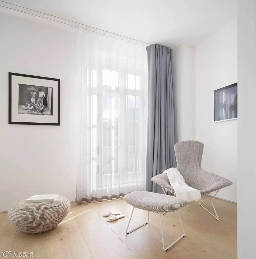 尽量增加窗帘的高度 上及天花板下及地板的窗帘自带延伸效果,能制造一种更高的空间感,从而扩大视觉效果。