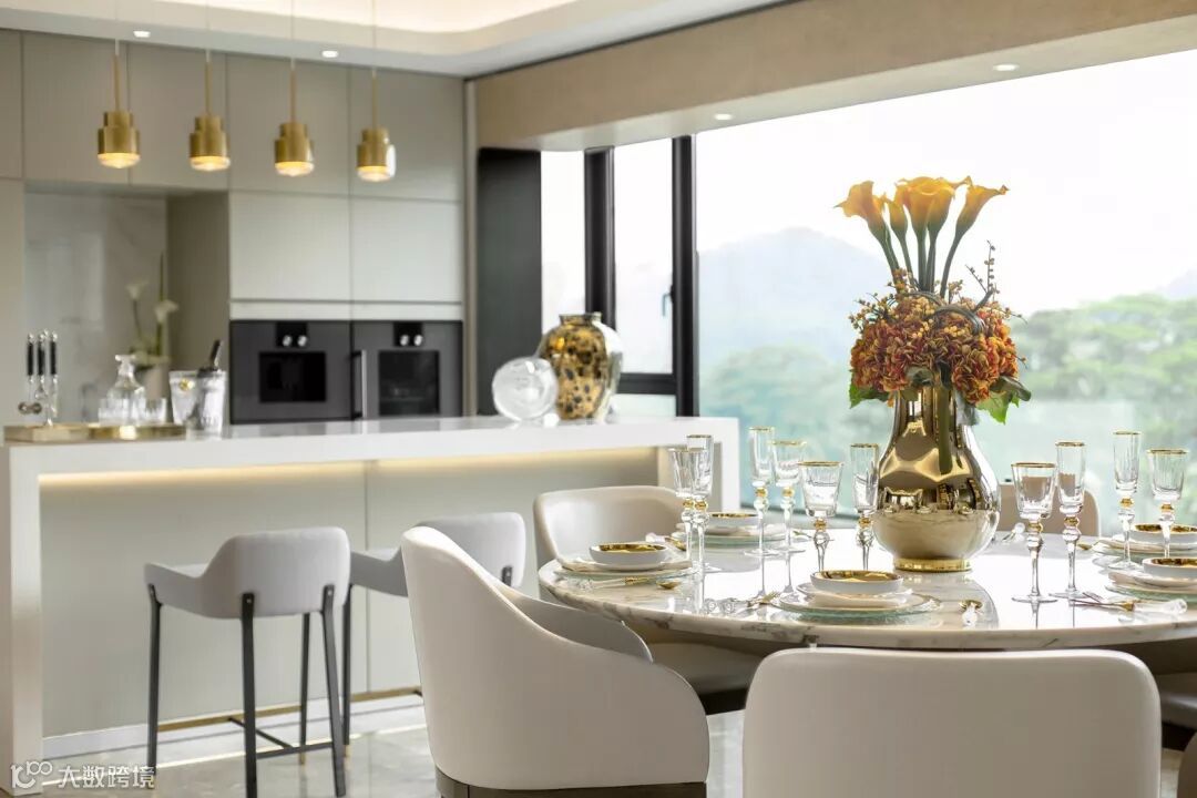 白色大理石圆形餐桌,不仅提升空间的亮度,更有助于家人之间情感的升温。