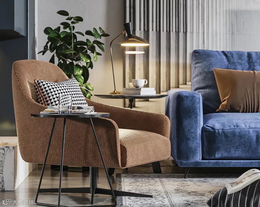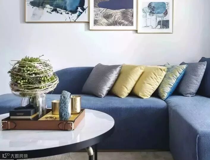 例如饱和度相对较低的蓝灰色抱枕,也能点缀空间的淡雅气息。
