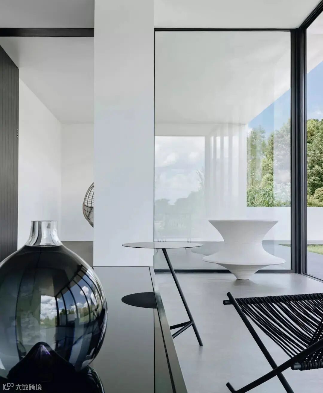 室内没有花花绿绿繁杂的门窗吊顶,反而采用了大面积的落地窗和玻璃墙体,室外的光线穿透进去,视野开阔,明亮透彻。