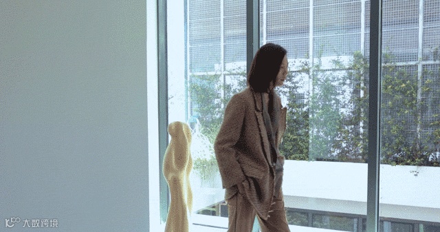 这面玻璃墙外栽种了一些四季常绿的植物,室内外两种视角看这面墙,人和植物影影绰绰,应该都会有朦胧又梦幻的观感。