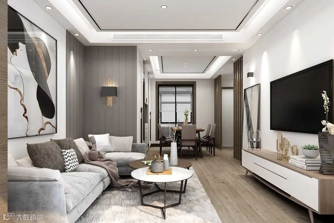 若客厅朝南,采光较好,色彩选择可以简约白色为主,搭配以象牙白、浅灰、淡蓝色等,这样冷色调的白色系会给屋子带来清凉感。
