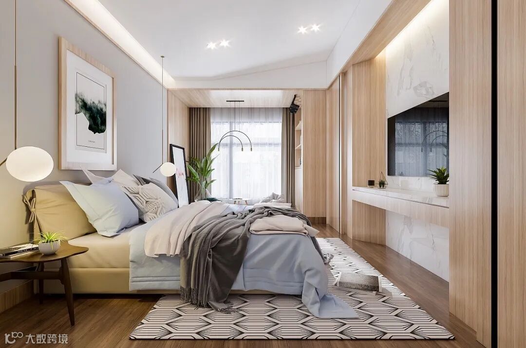 卧室大面积使用浅色调更易建造出温馨的睡眠环境,所以卧室墙面最好选用浅色系颜色来装饰。