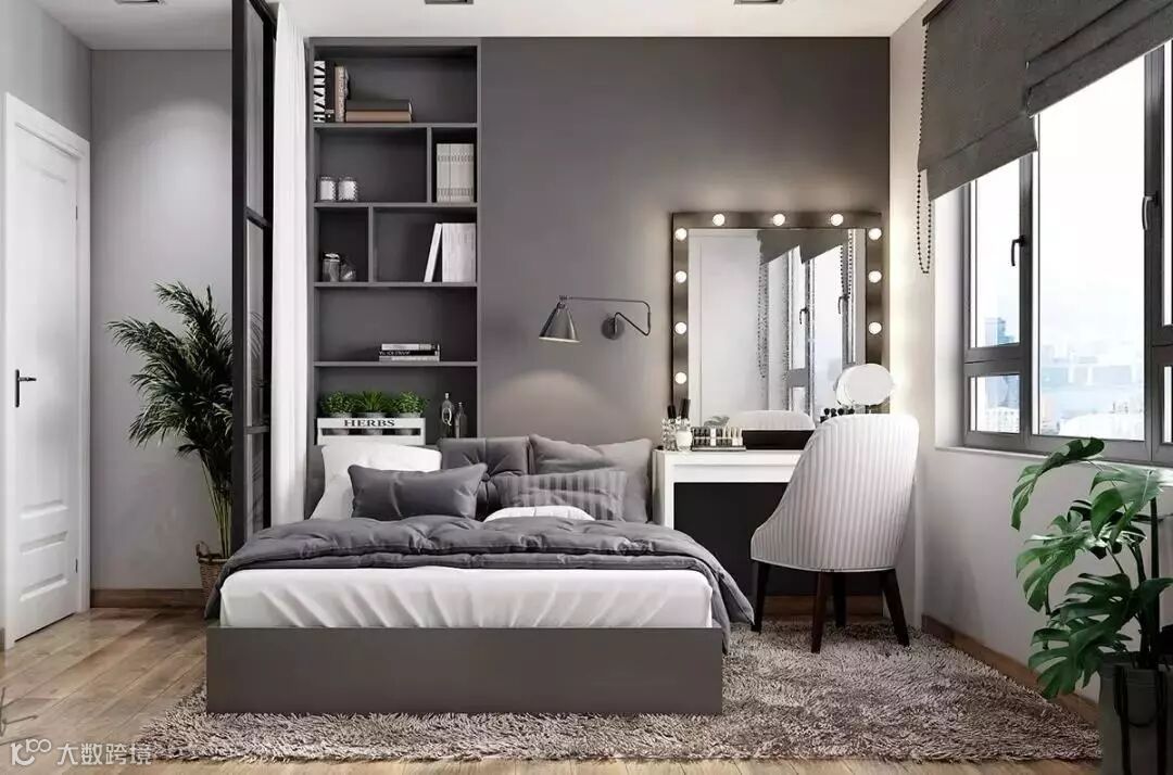 衣柜+梳妆台的设计,让拿取物品和放取衣物更为便利,让选衣搭配和梳妆打扮之间的动线更短更高效。
