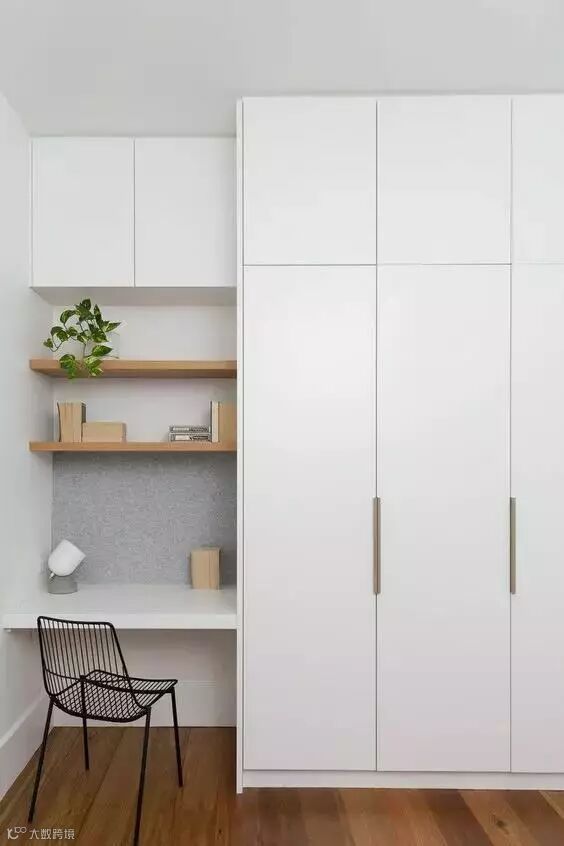 书桌和衣柜合二为一,收纳、工作和艺术展示都不成问题。