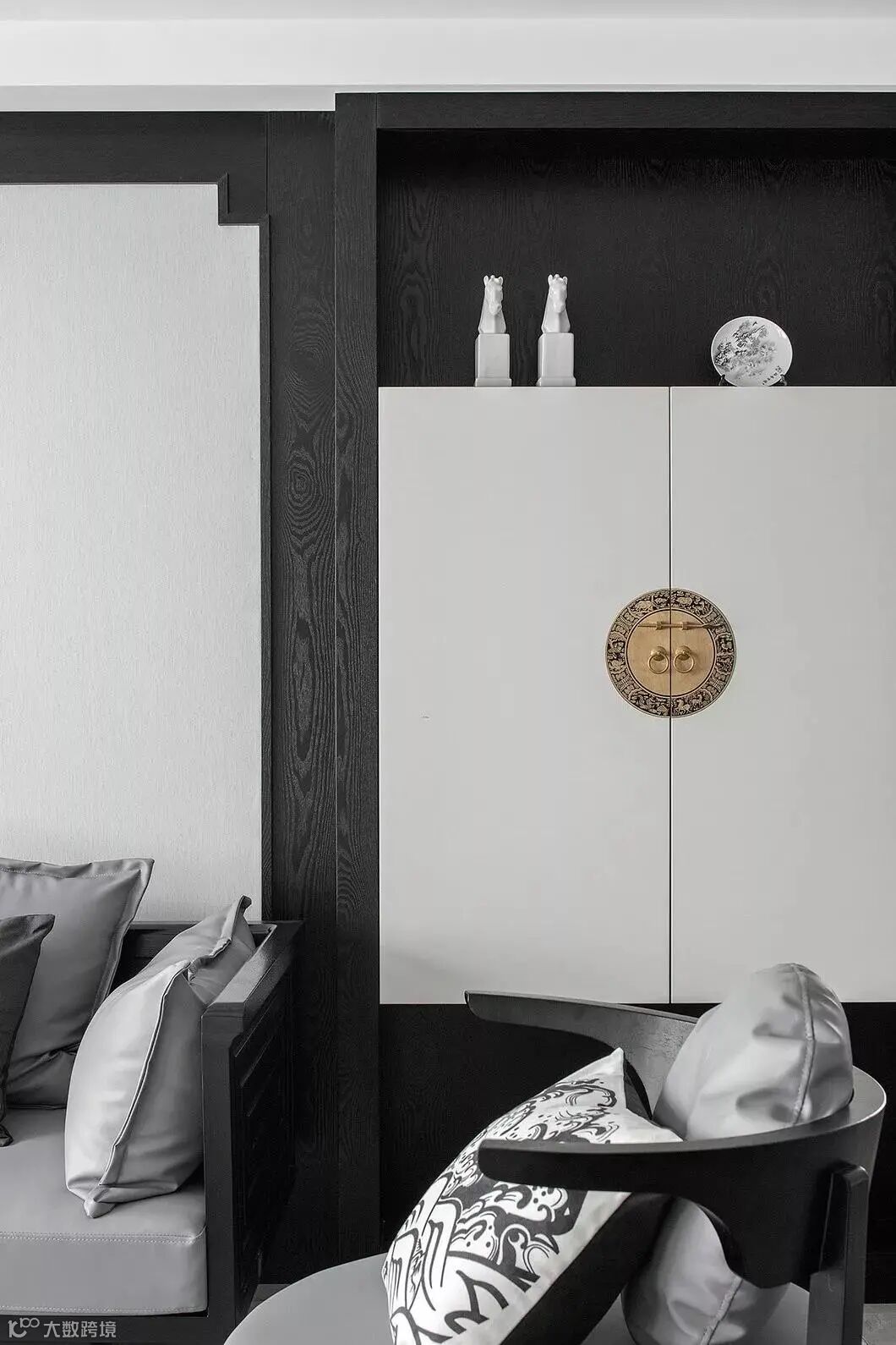 灰白色的鼓凳颠覆了传统中式一成不变老气的样式,铜耳和中式特有的浪花得以保留,显得既时尚又经典。