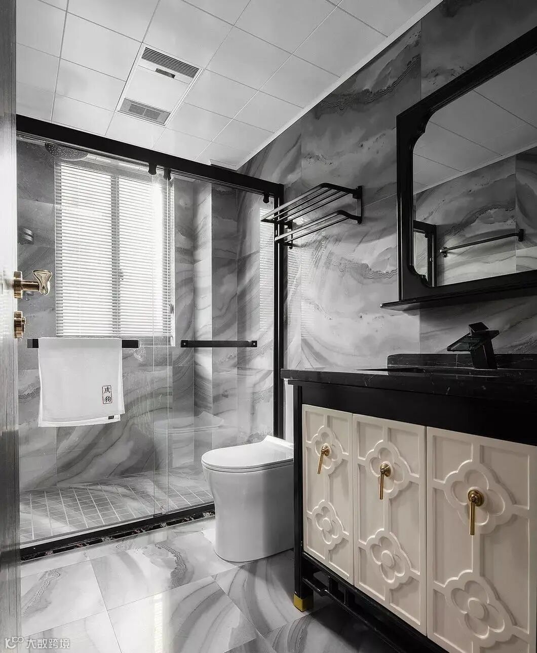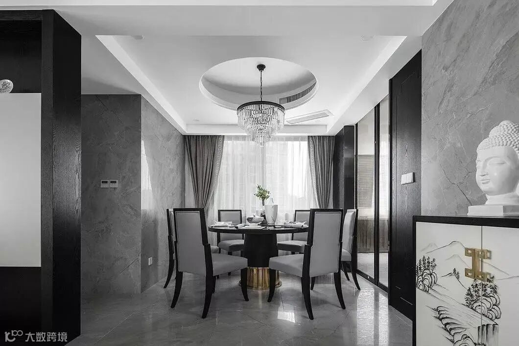 水墨画的瓷砖,自然,又有"墨韵“,现代时尚的同时极具中国风。当“高级黑”和“新中式”相遇,造就了一幅灰色的水墨写意。