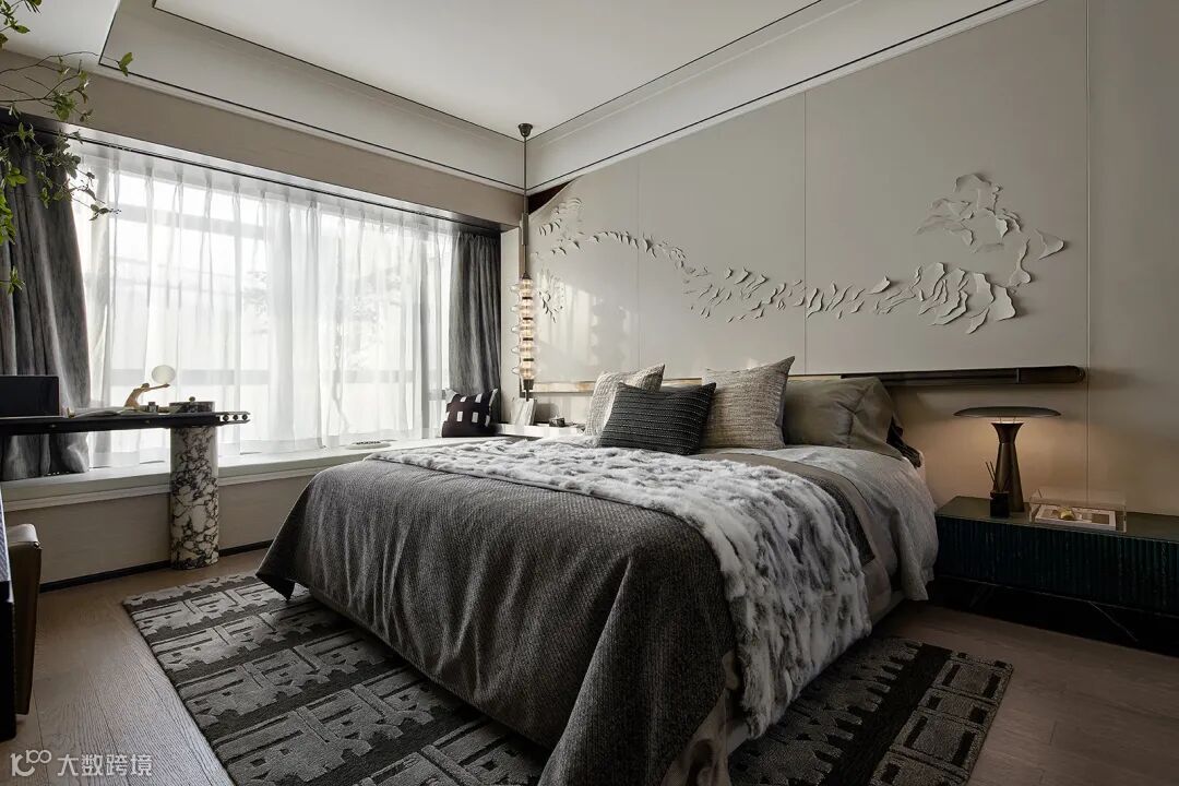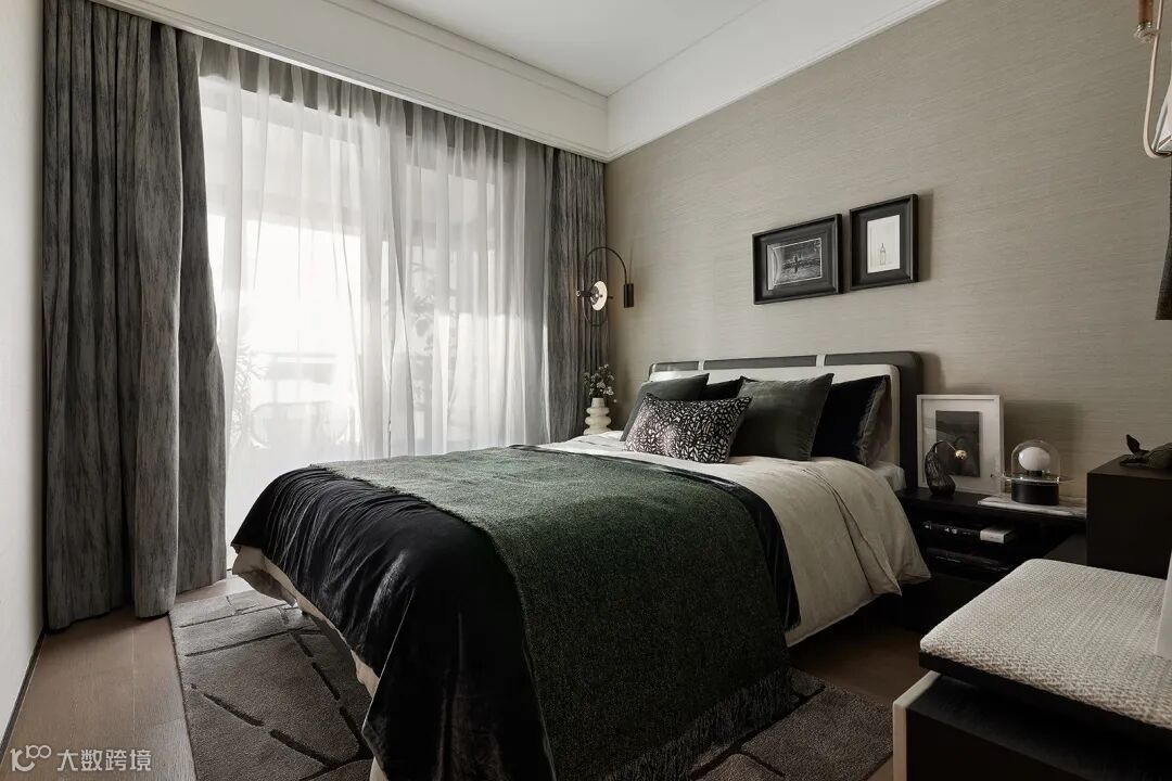 主卧的设计延用了室内的整体格调,简单随意,又不失优雅精致。