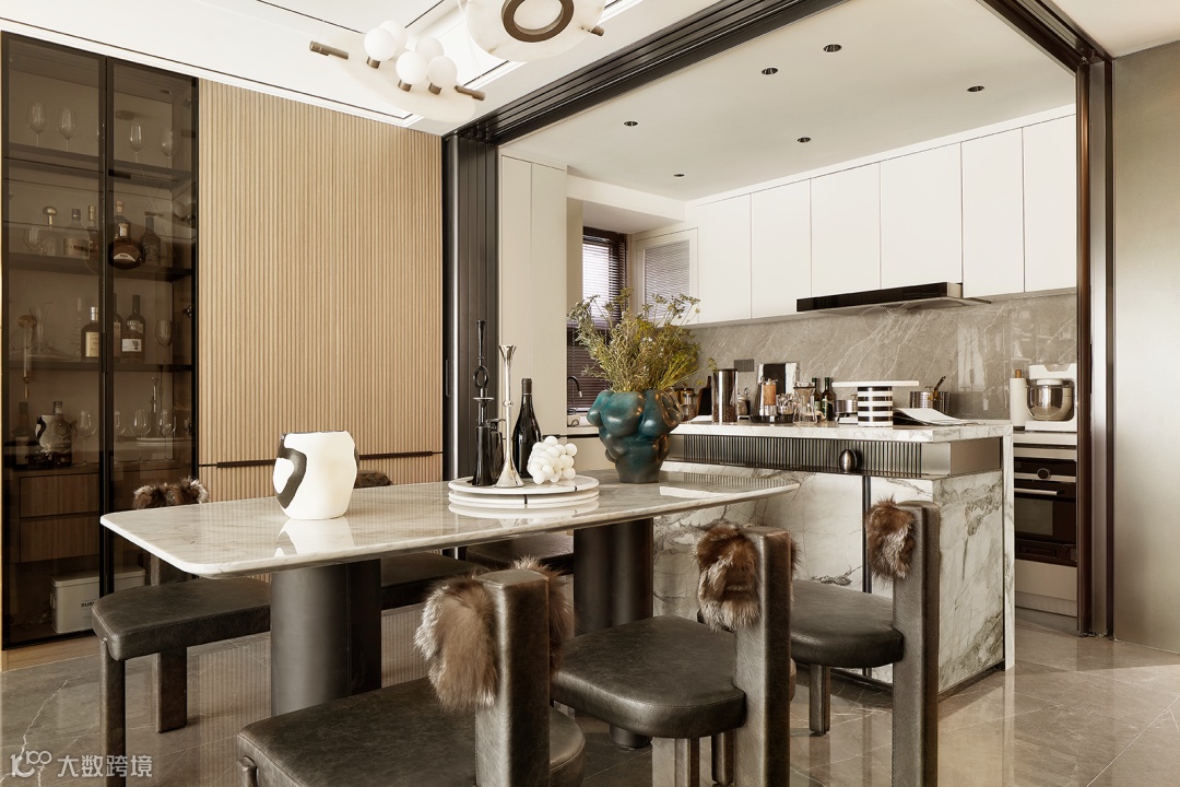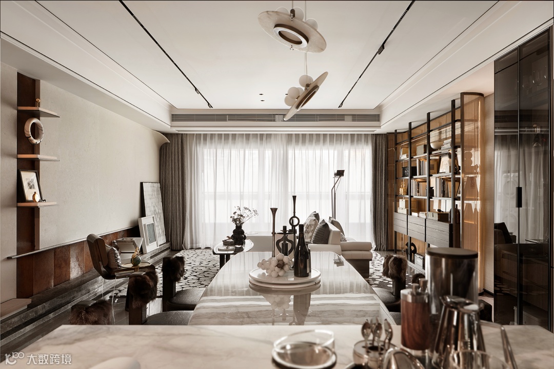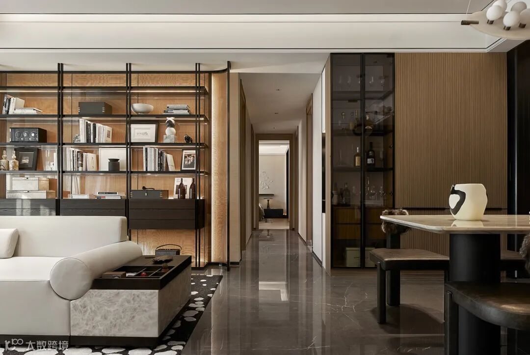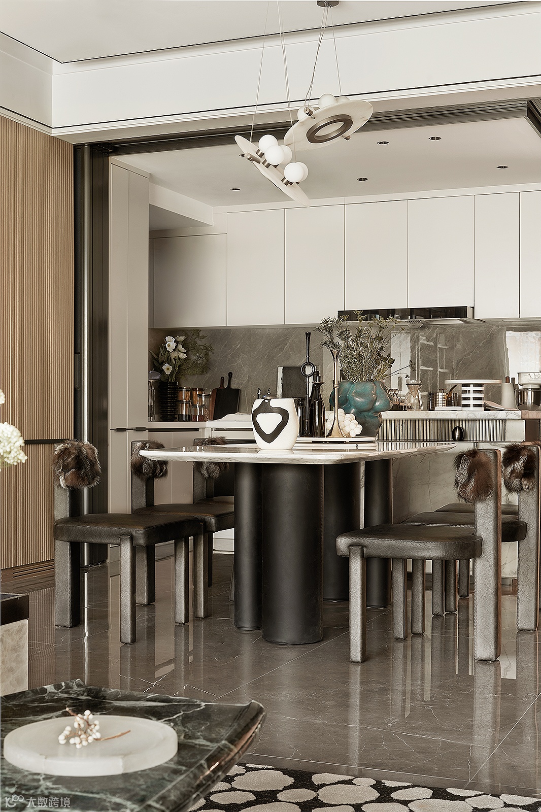 家庭的餐厅已不再仅仅是一个进餐的地方,利用通透创造出区域间的隐秘体验,将优雅注入每个空间的细节里,作为设计者将所有人在居所中的生活习惯都考虑到,达到整体空间流畅的布局和使用体验。