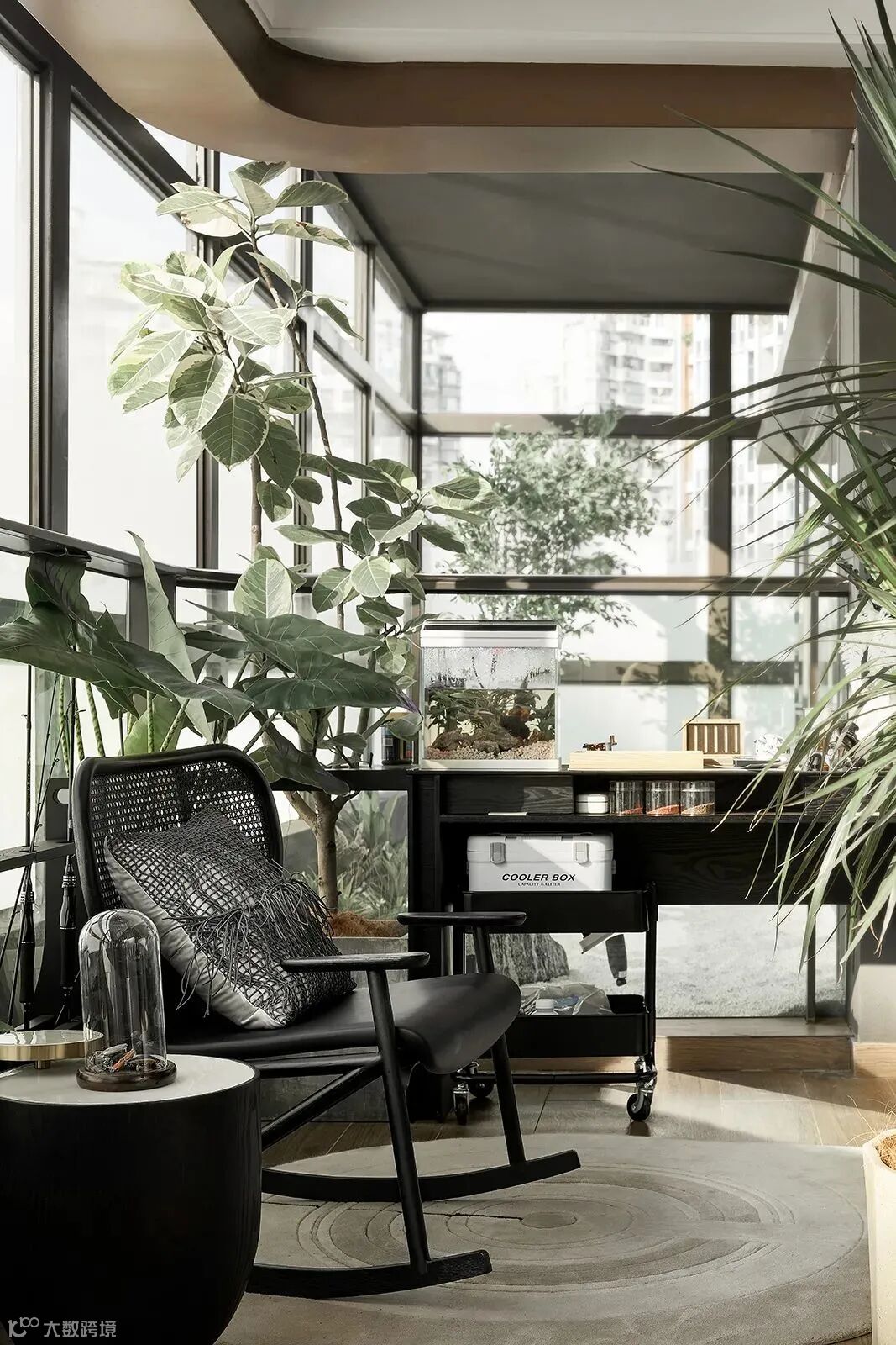 阳台结合了女主人喜欢手工制作的兴趣爱好,将自然融入室内。