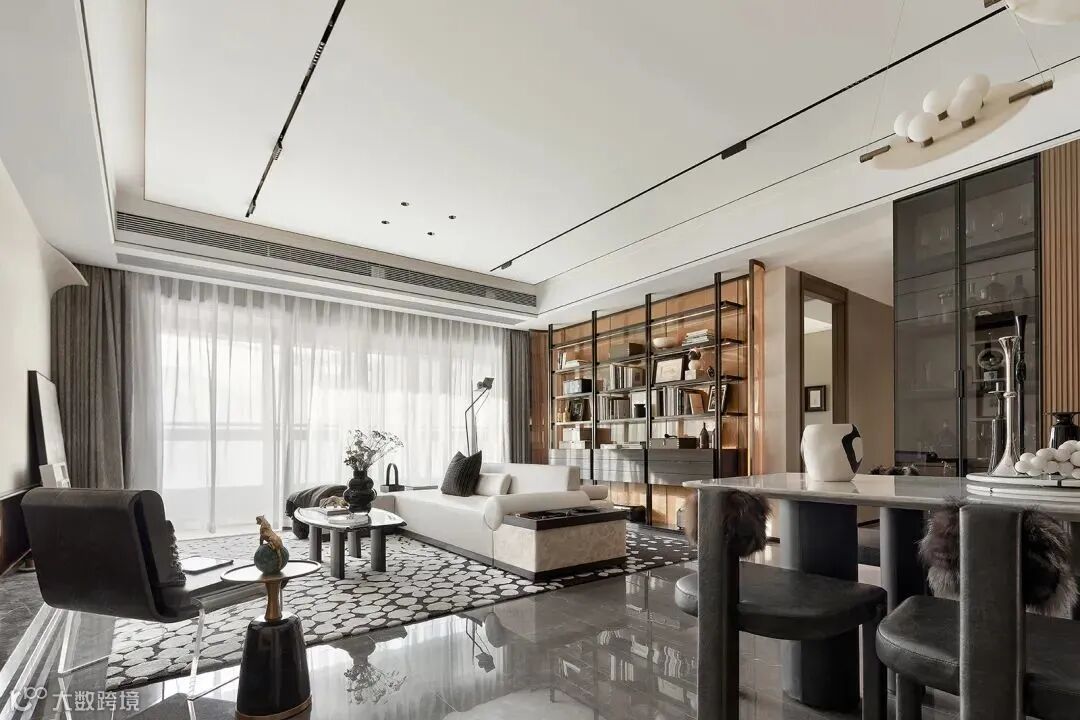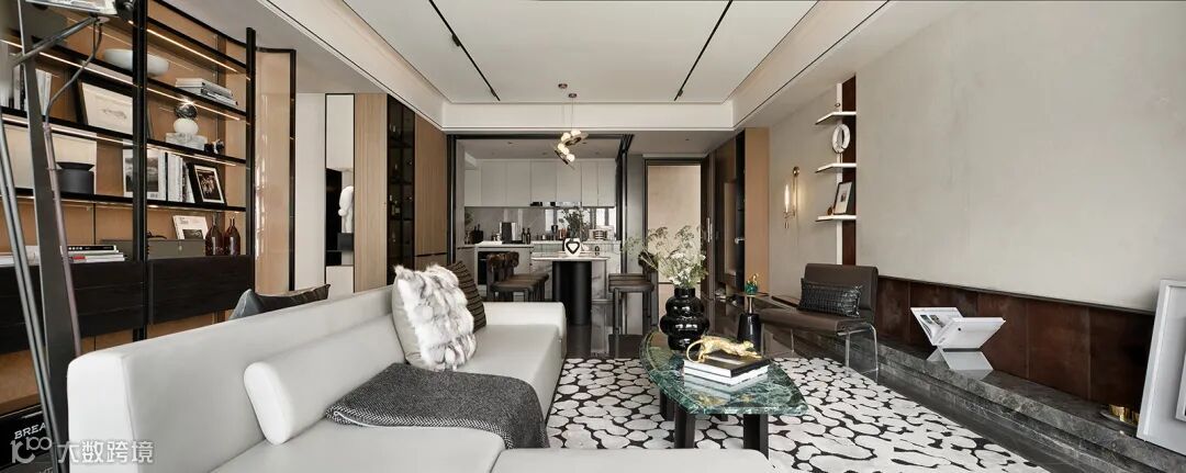 客厅布局打破常规的空间界限,以社交为中心,以时尚摩登的姿态引城市气韵入室,“场景化”打造生活空间,设计者用创意去探索空间的每一种可能。