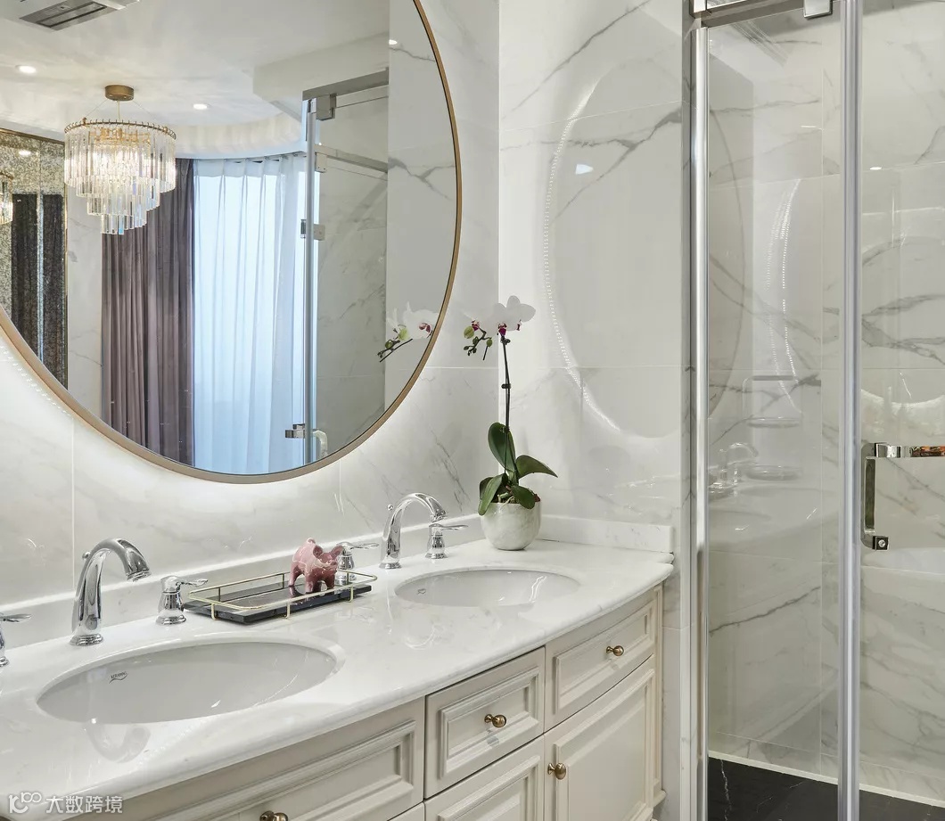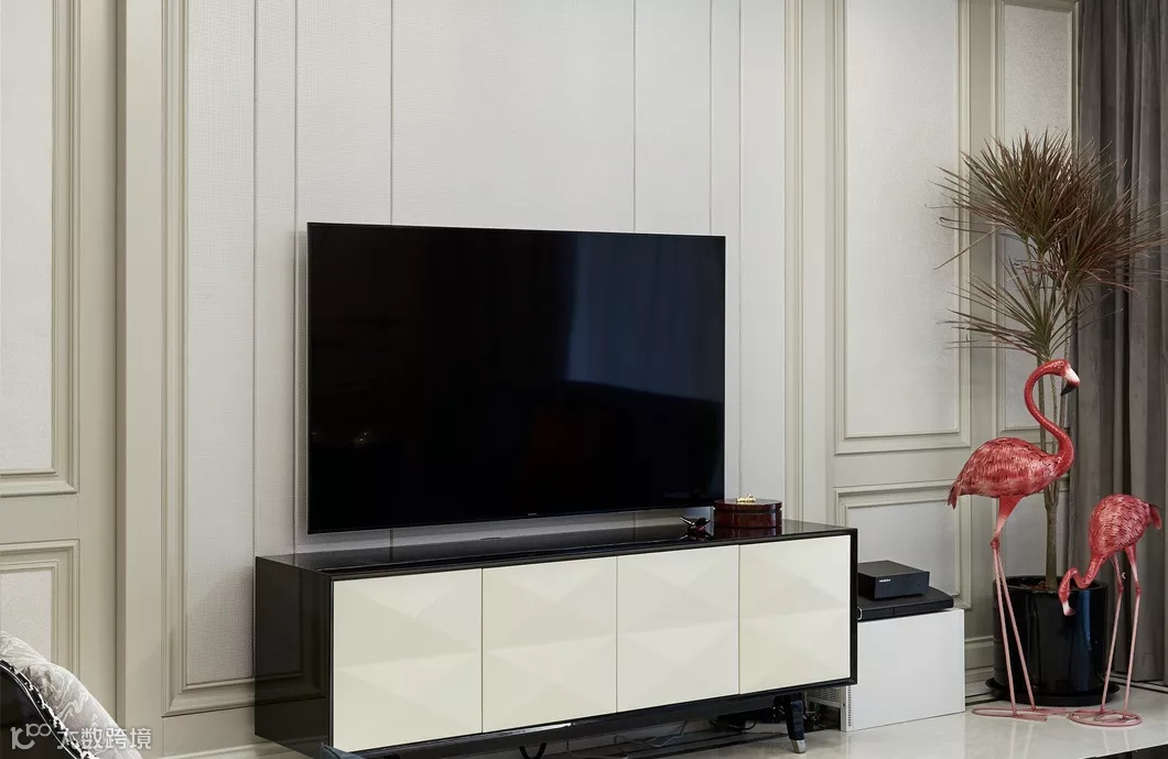 没有多余的装饰,欧式浮雕对称的电视背景墙,整体呈现立体层次感,造型精美大气,具备很强的装饰性和观赏性;又通过细节的布置作为点缀,缓解环境的清冷,营造温馨不失雅致的氛围。