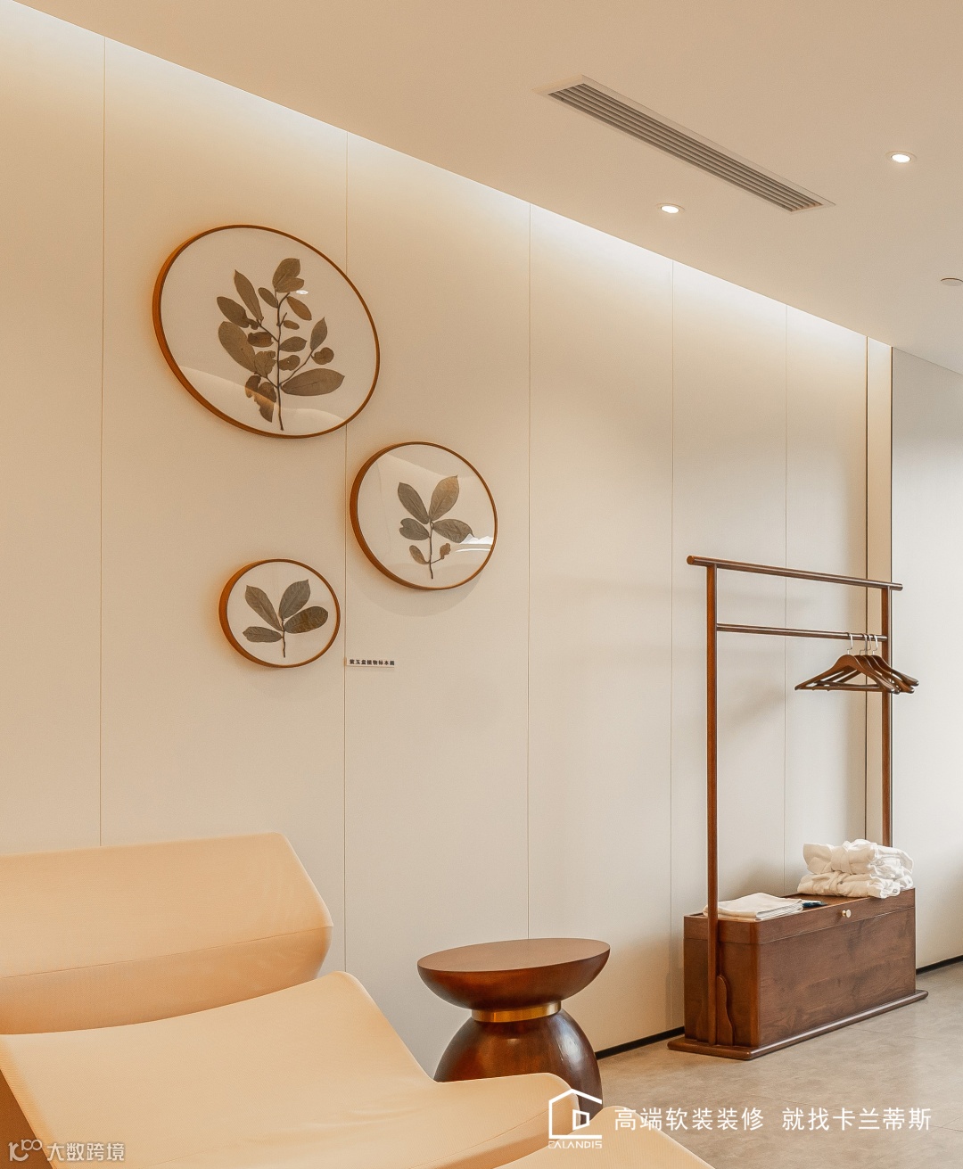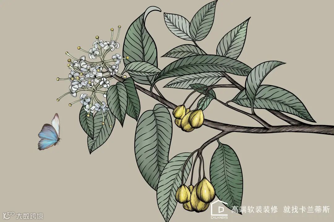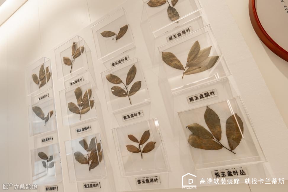 图为紫玉盘植物标本+亚克力装裱,依附在墙面上,营造出一个芳香主题温馨的居所氛围。