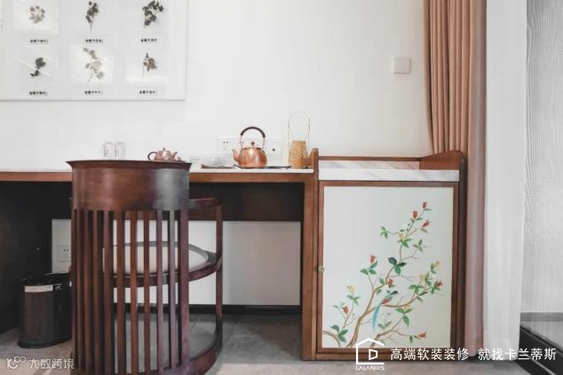 以“书香门第”为主题,白色与木质的搭配,呈现简约典雅的新中式风,每一处的精心设计都融入到其文化内涵中。