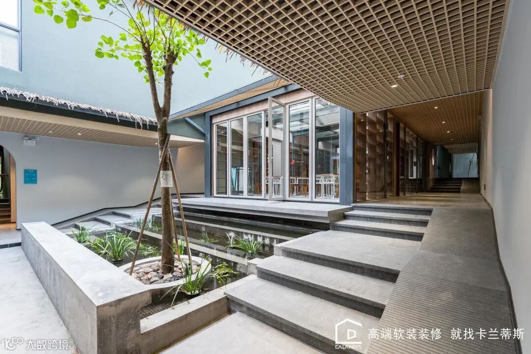 庭院式的室外设计,光线十足,切身感受大自然的清新。楼梯的布局讲究空间的层次感以及跳跃感,走在上面丝毫感受不到累赘感。