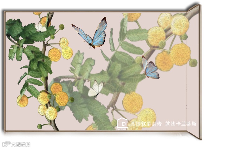 图案根据各房间的芳香植物而对应定制,堆漆画内含泥塑之技,外呈浮雕之形,兼蓄油画特色,三者浑然一体,具有雍容富丽、斑斓多彩的风格。