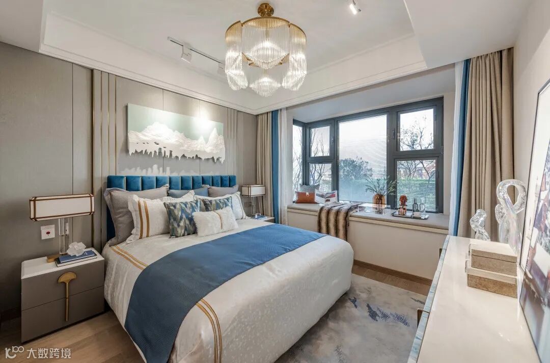 主卧让居住者身处室内时也能感受大自然的亲切,享受每一座雪山环绕、每一潭湖水照耀,仿佛置身于其中。大自然的呼吸感和美感带来别致的视觉体验。