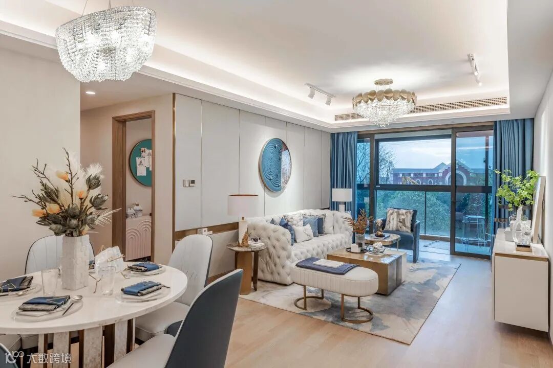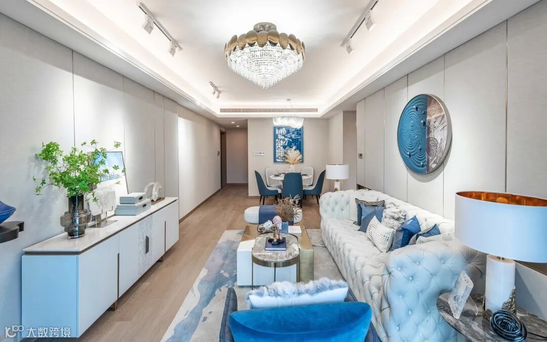 在客厅中,设计运用开放式布局,拓宽空间的视野与尺度,营造流畅的空间动线、优质的采光与空气流通,从物质形态到精神层面,打造一个富有空间体验感和浓厚艺术气息的品质空间,在空间中尽享冰川湖泊之美。