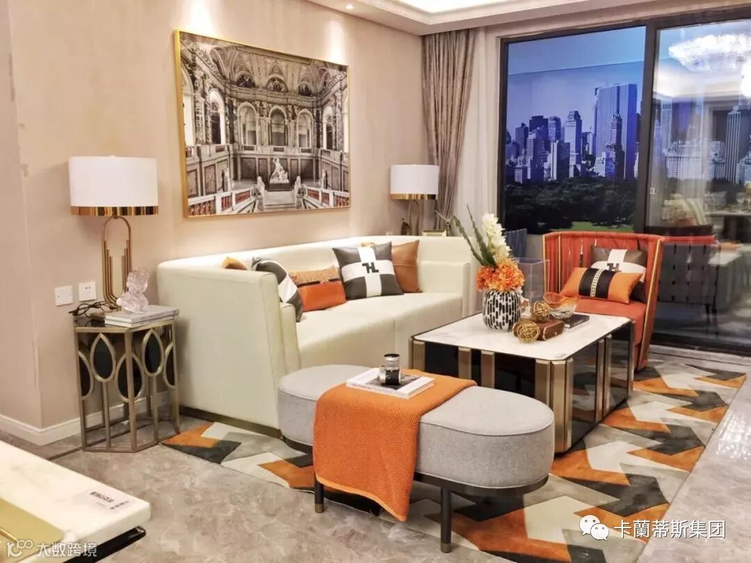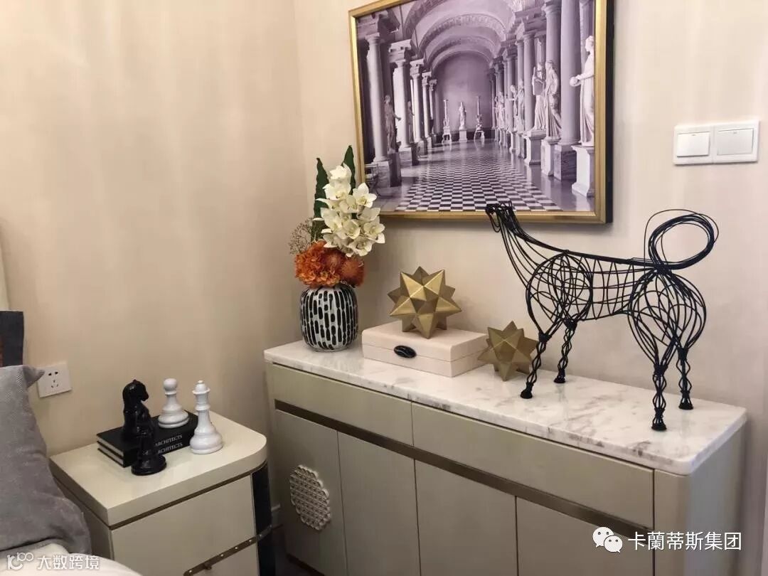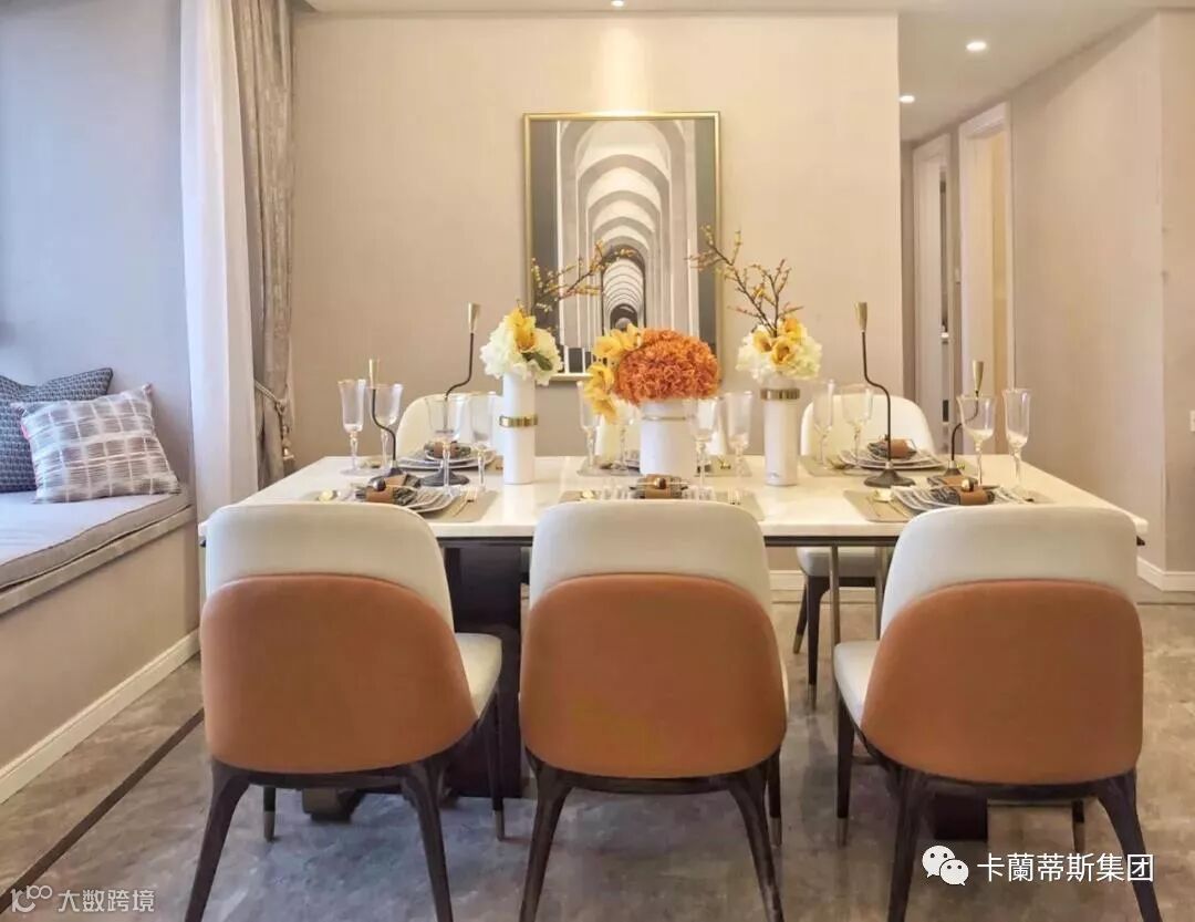 在整个空间,到处都能看到现代奢侈风格的各种材质,完美的凸显出轻奢风格的低调奢华。