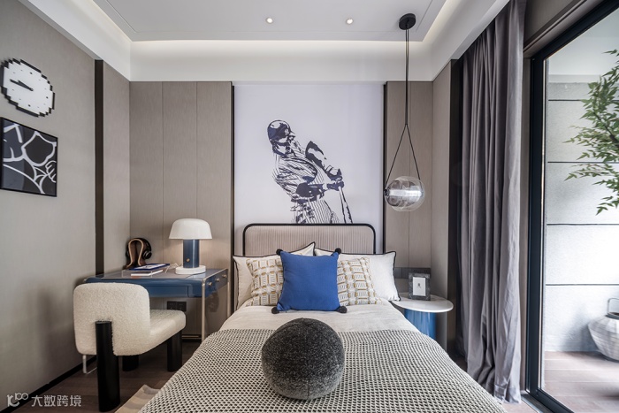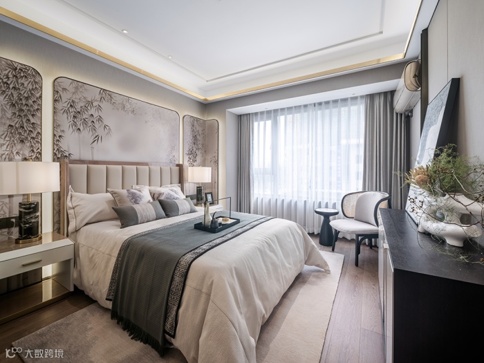 主卧清雅舒适,以浅色系为整体基调,给人以空濛雅致的氛围感以及舒适从容的归属感。