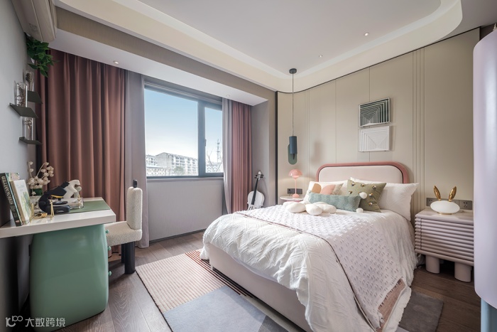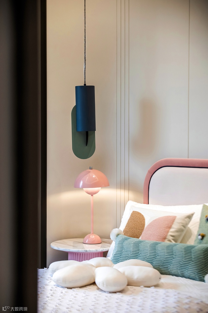 儿童房以简单纯粹的粉色作为主色,象征孩子澄澈的世界。