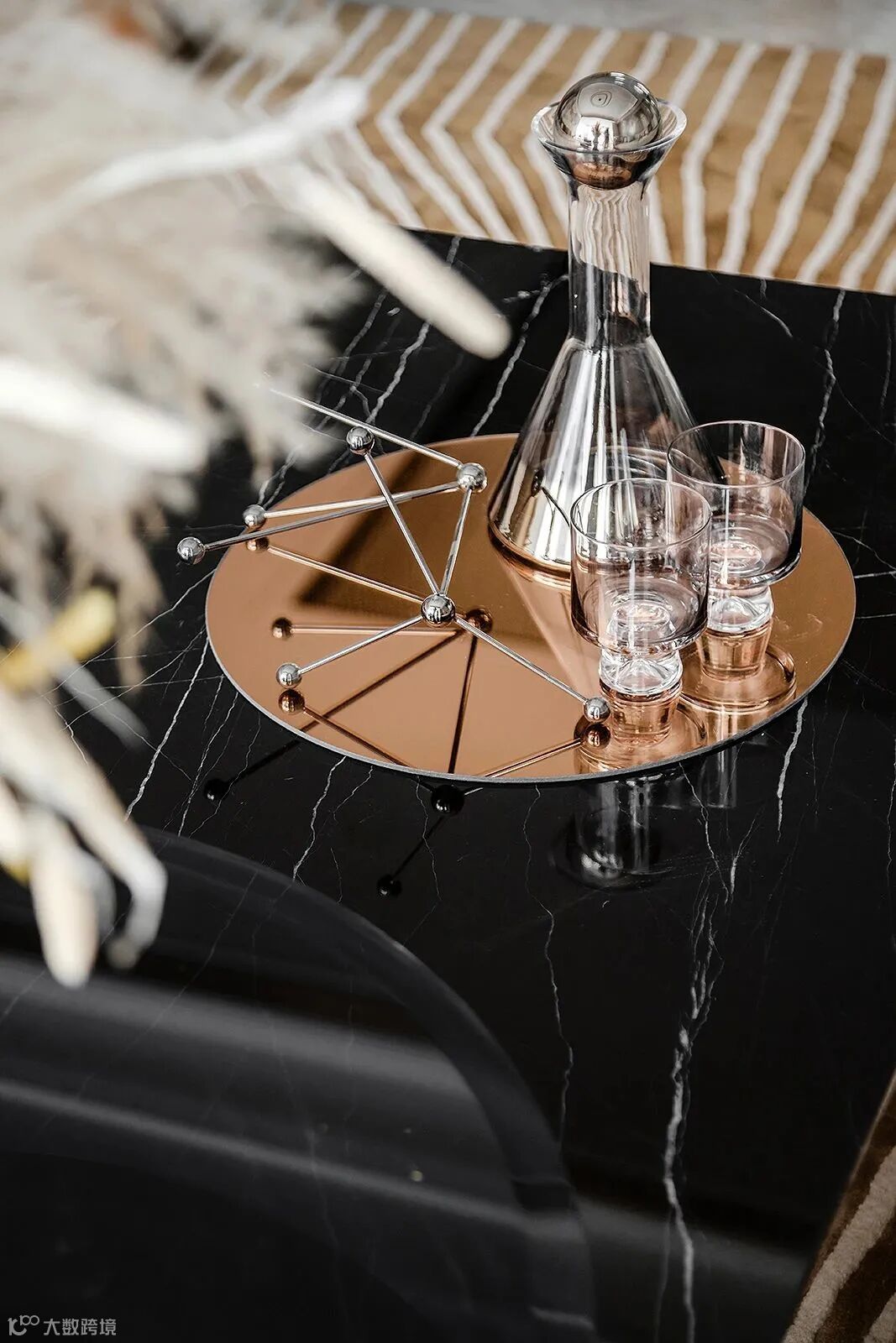 取材于人文与自然,设计臻选西式的阁楼装饰挂画、现代感的金属环形吊灯、条状样式的地毯,融合颇具东方韵味的枯枝花艺,于当代都市图景的营造中,将生活与自然的意趣容纳其间。