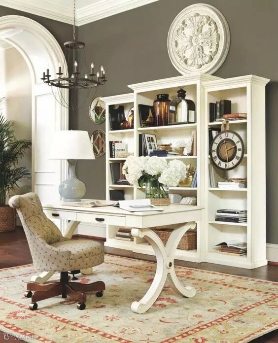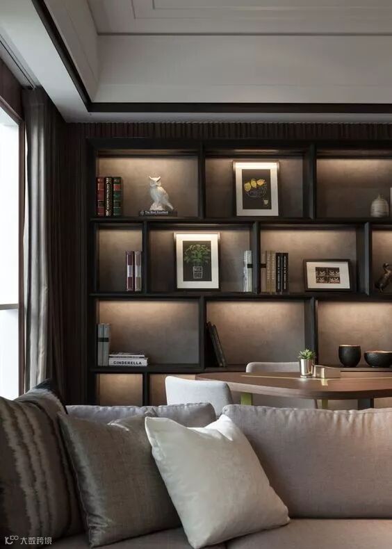 书架除了书之外,需要摆放一些工艺品,让空间解除一丝沉闷感。还有书桌、案头也可以摆放几件工艺品,既可以在闲暇时欣赏、把玩,又可以增加主人的生活气息。