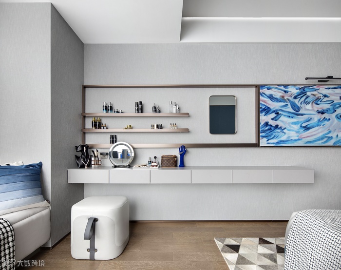 主卧围合式设计连接睡眠区与卫生间,最大程度地增加收纳空间的同时,也让动线更加高效合理。